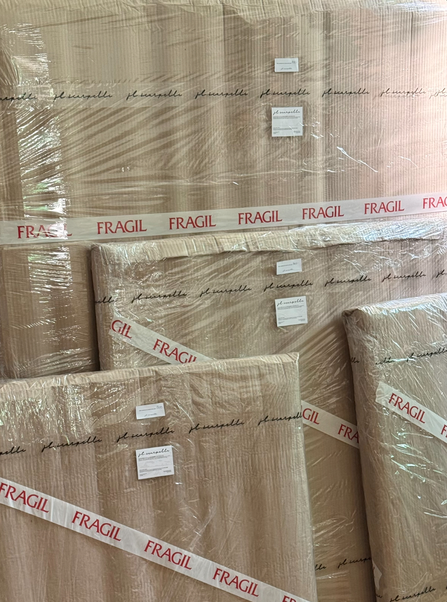 Me encargo de coordinar el envio y hacer el seguimiento del mismo hasta que llegue a destino. Cada obra esta embalada con varias capas de distintos materiales para garantizar su correcta protección. Es importante tener en cuenta que el tiempo de entrega depende del transporte.